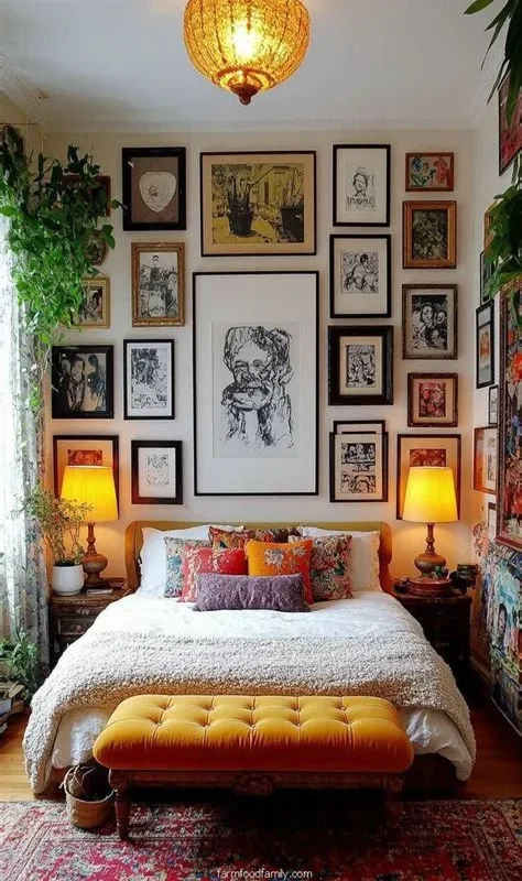 Furniture in an eclectic bedroom can come from various sources and periods. A vintage armchair might sit comfortably next to a modern bed frame, or a rustic wooden dresser could be paired with a sleek metal side table. The variety adds a unique narrative to the room.